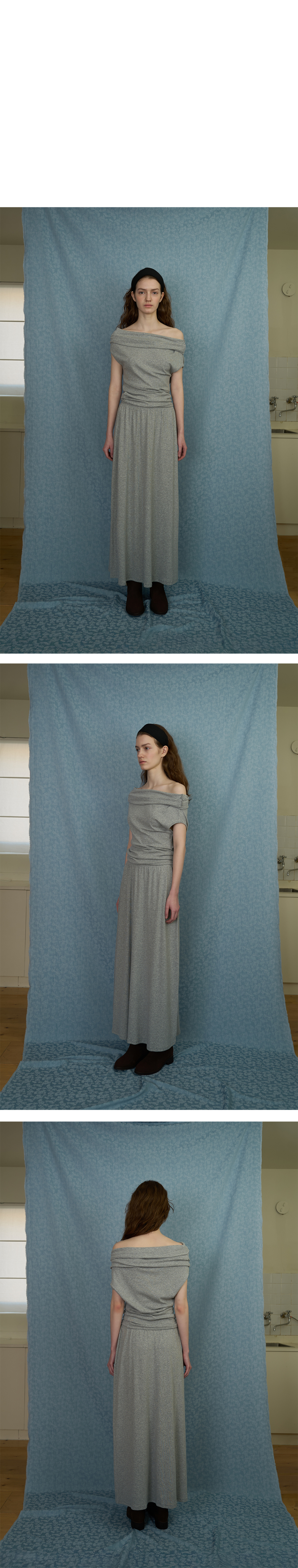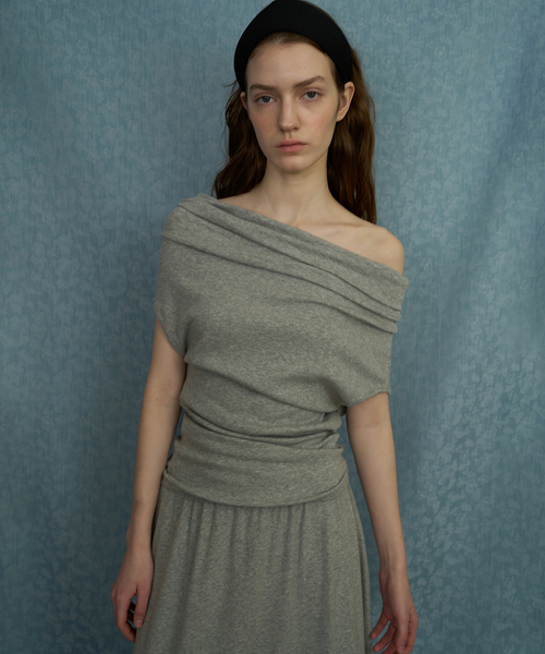 바디라인을 부드럽게 감싸며 내추럴한 여성미를 드러내는 'Comfort off-shoulder top'입니다.
