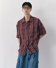 WRINKLE HALF SLEEVE COLLAR CARDIGAN (RED CHECK)