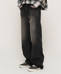 커브드 라인 워싱 데님 팬츠 (블랙)