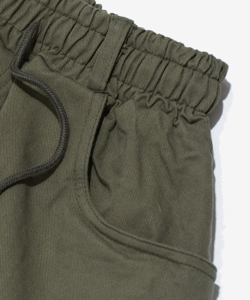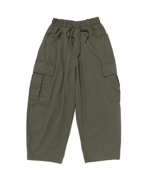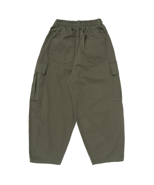 워시드 코튼 커브드 빅카고 팬츠 (카키)
