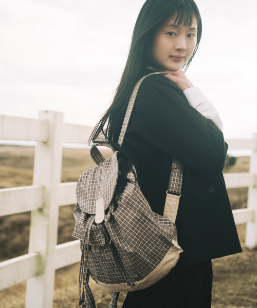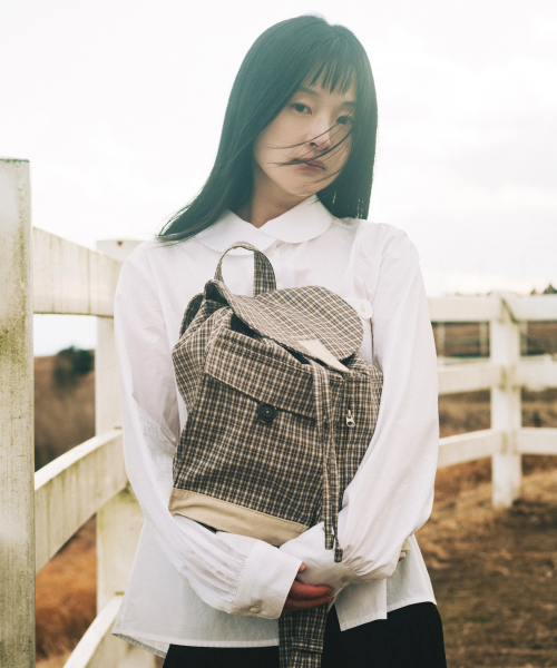 DUAL POCKET BACKPACK, BEIGE CHECK