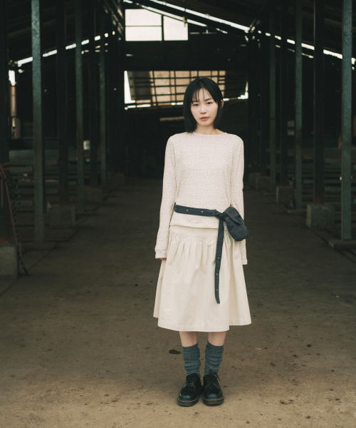 WEAVING POCKET CAP-SLEEVE KNIT, IVORY