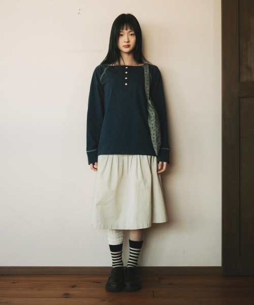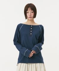 BOAT NECK BUTTON LONG SLEEVE, NAVY