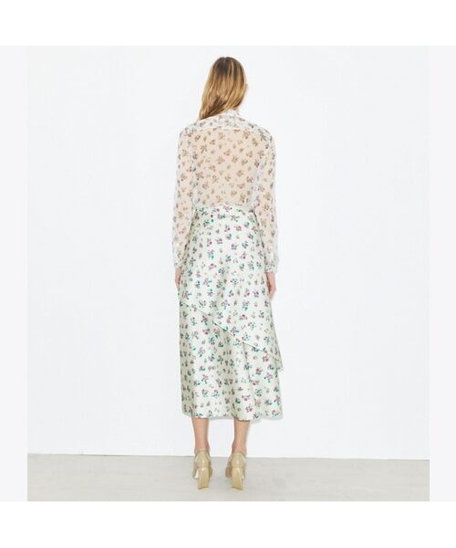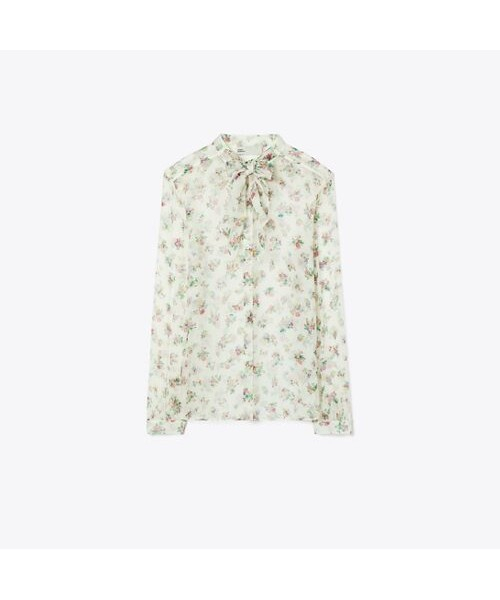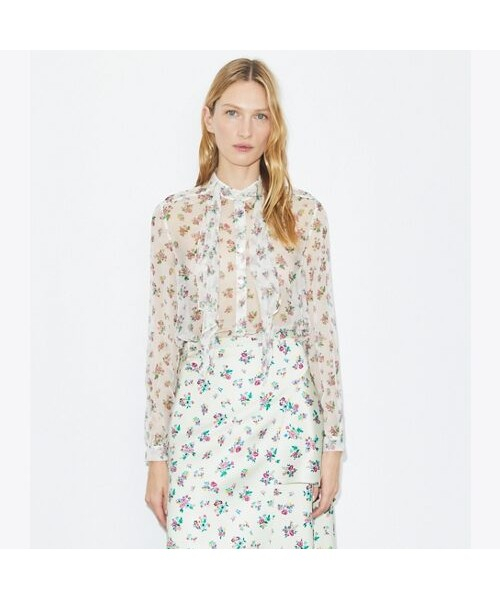 시즌 프린트인 플로럴 패턴으로 제작된 실크 보우 블라우스입니다. 은은한 잔 꽃무늬 패턴과 넥라인의 보우 디테일이 페미닌한 무드를 자아내며, 어떤 하의와 매치하는지에 따라 다양한 분위기로 연출 가능한 블라우스입니다.