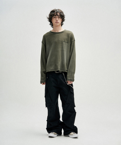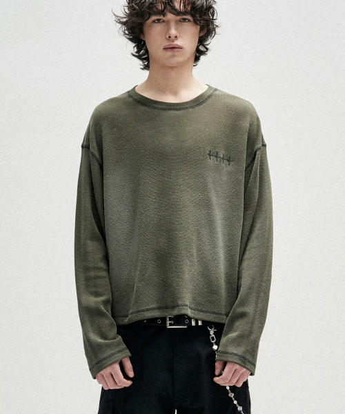 VLAD 스몰 로고 페이드 워싱 반팔 티셔츠_피그먼트 네이비