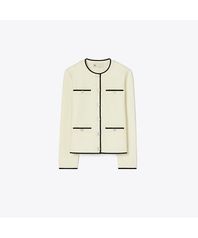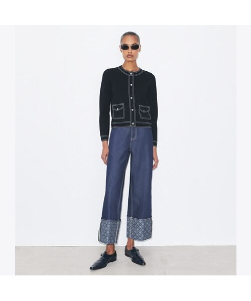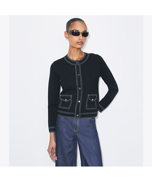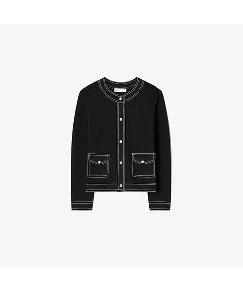 탑 스티치 디테일과 가슴 쪽 포켓 패치 디테일이 돋보이는 울 소재의 가디건입니다. 끝단과 포켓 라인을 따라 들어간 스티치 디테일이 포인트가 되어줍니다. 동일 소재와 컬러의 스커트(TB6127LBH5)와 매치하여 토탈룩을 연출할 수 있습니다.
