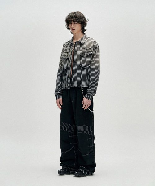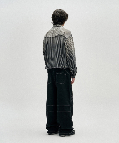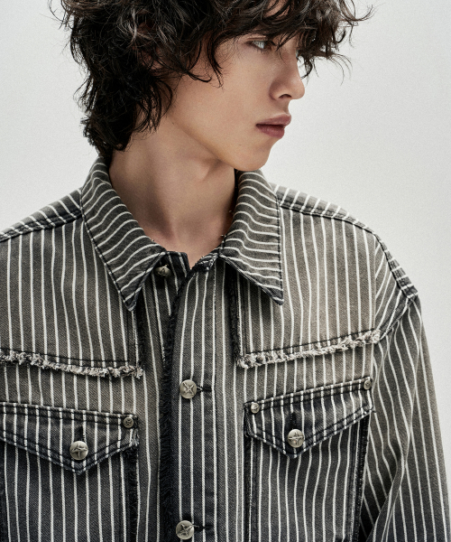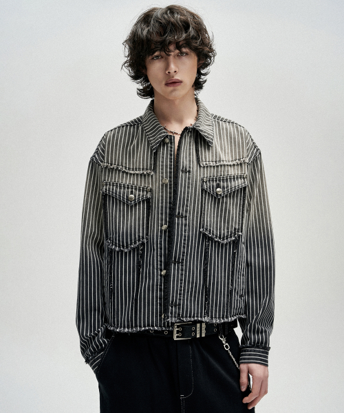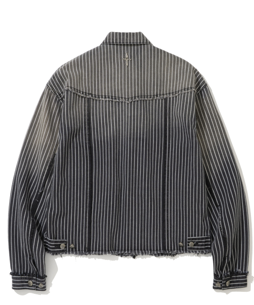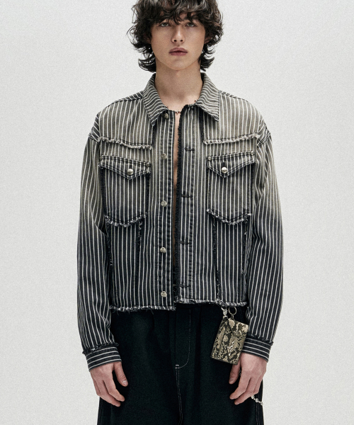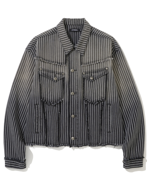 Dyed Stripe Raw Cut Stripe Denim Jacket - Black