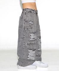 XP251 멀티 포켓 데미지 빅 와이드 데님 팬츠 (GRAY)