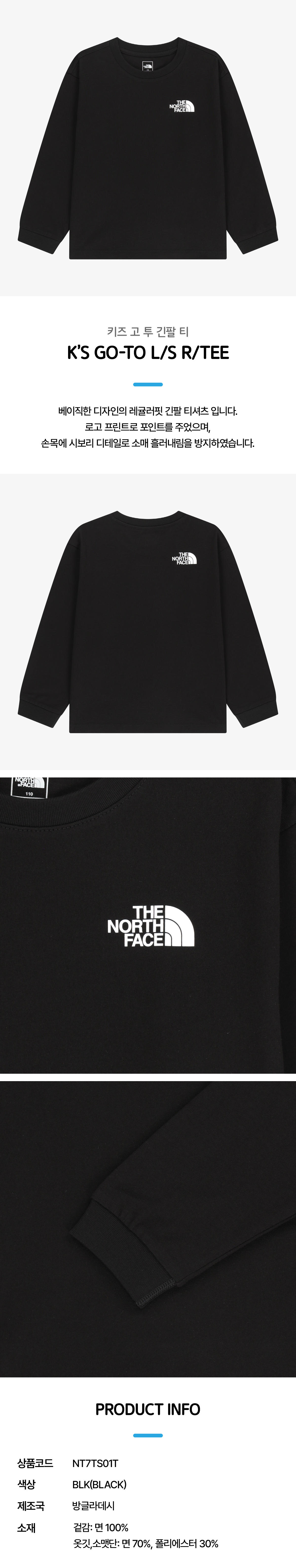 키즈 고 투 긴팔 티 NT7TS01T_BLK