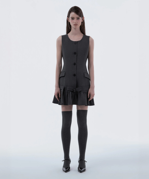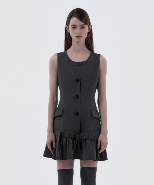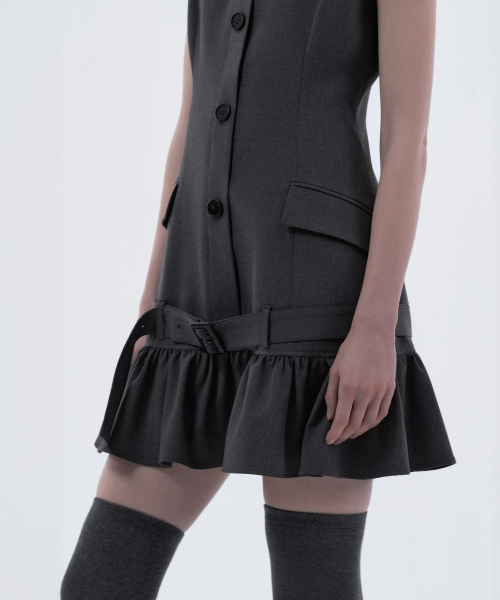 Sleeveless Flare Suit Dress - Dark Grey