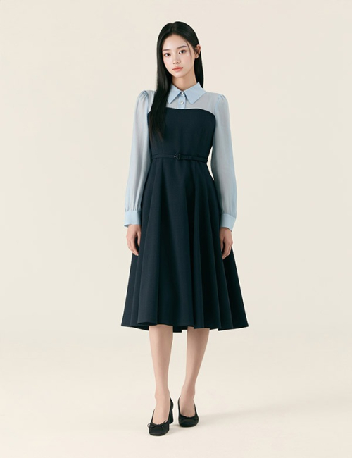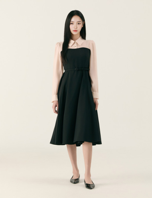 우븐매칭 롱 원피스_RMOWG23S11