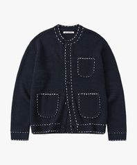 (우먼)울 핸드 스티치 라운드 가디건 네이비