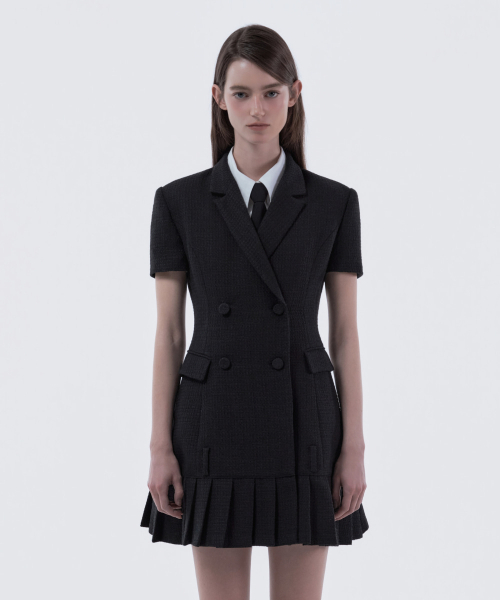 Jenn Round Neck Pleated Suit Jacket Dress - Black