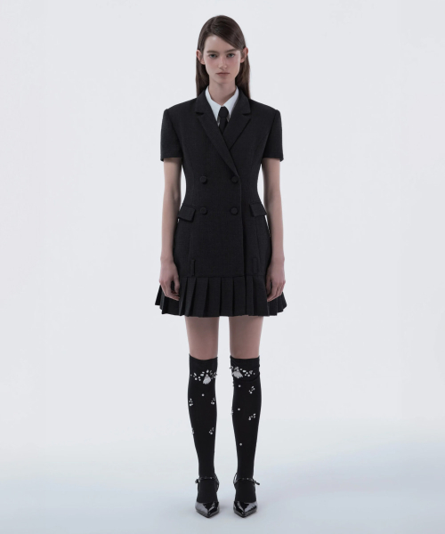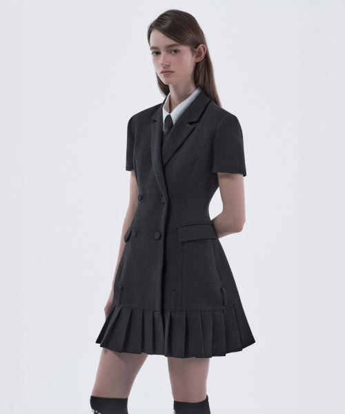 Jenn Pleated Suit Jacket Dress - Grey