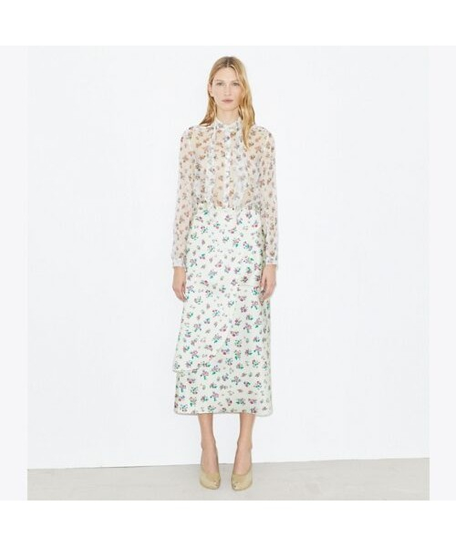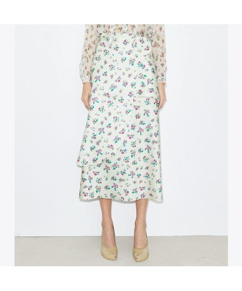 시즌 프린트인 플로럴 패턴으로 제작된 레이어드 새틴 스커트입니다. 비대칭으로 레이어링되어 있는 독특한 실루엣에 은은한 잔 꽃무늬 패턴이 더해져 유니크한 무드를 자아냅니다. 스커트 하나만으로도 레이어링한 듯 트렌디한 룩으로 연출이 가능합니다.