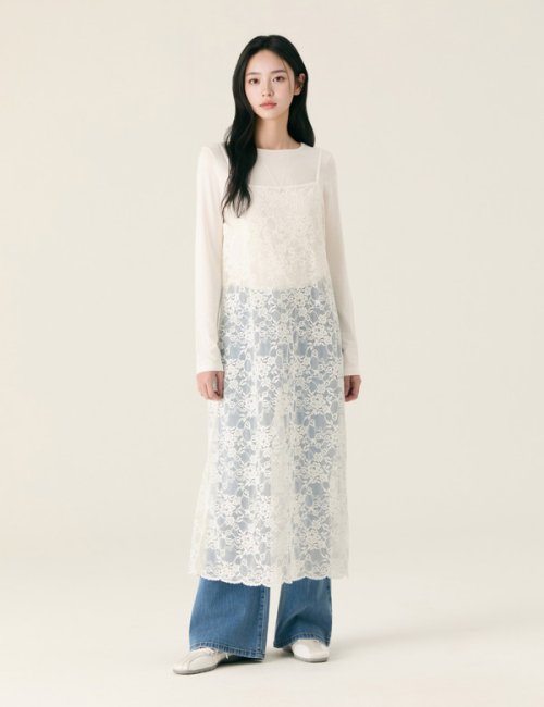 우먼즈 시어 슬림 긴소매 티셔츠 [화이트]