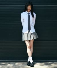 우먼즈 로 라이즈 플리츠 미니 스코츠 [멜란지 그레이]