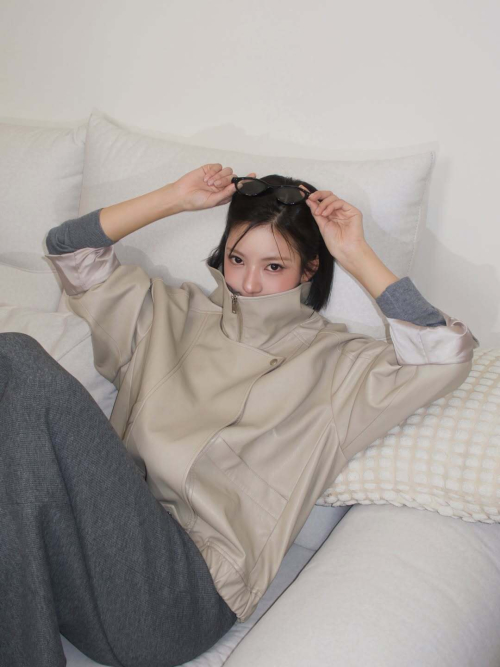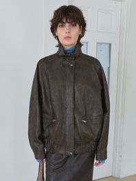 (사이즈추가)High-neck Leather Blouson Jacket VL5AJ093_2color