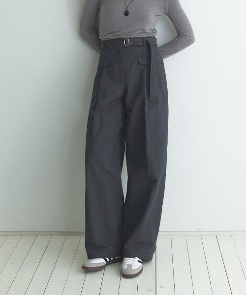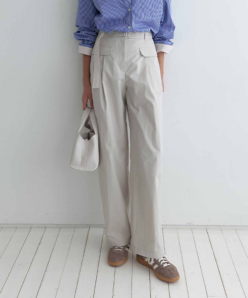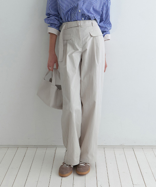 벨트 코튼 커브드 팬츠 NEW6SL216