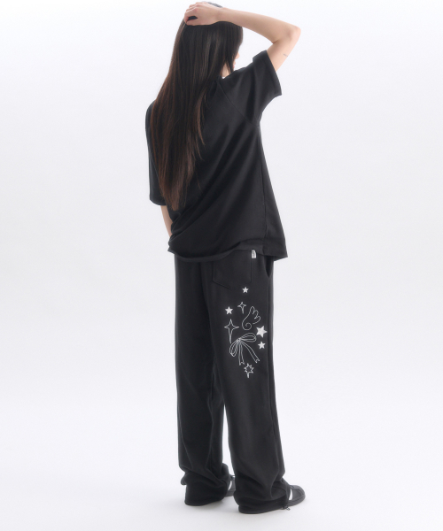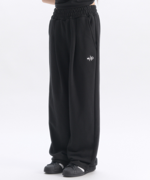 Angel And Ribbon 자수 핀턱 2-Way 와이드 트레이닝 스웨트 팬츠 AP1002 (블랙)