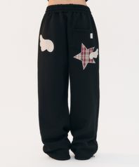 [쭈리/기모] Angel Star Patch 자수 원턱 스트링 와이드 스웨트 팬츠 AP903 (블랙)