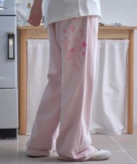 Angel And Ribbon 자수 핀턱 2-Way 와이드 트레이닝 스웨트 팬츠 AP1002 (핑크)