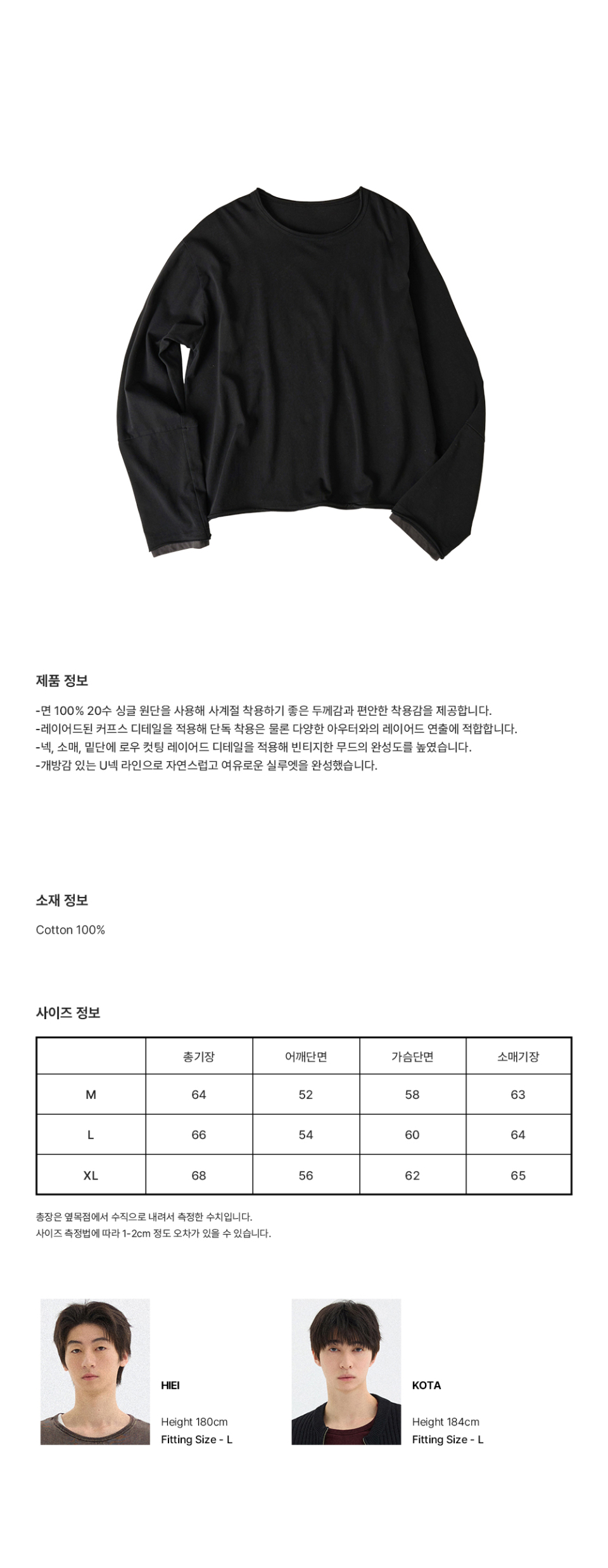 레이어드 커프스 롱슬리브[블랙]