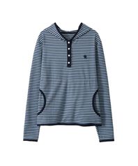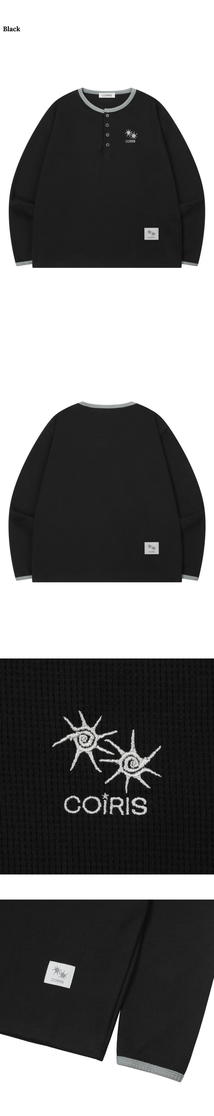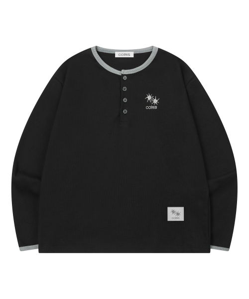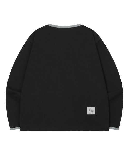 스테이플 버튼 와플 배색 오버핏 긴팔 티 남녀공용