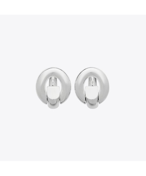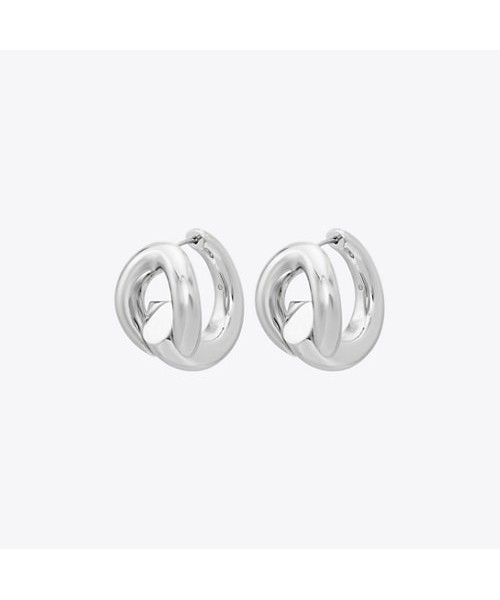 두개의 고리가 교차되어 있는 듯한 디자인의 피어스드 후프 이어링입니다. 군더더기 없이 깔끔한 실루엣으로 고급스러우면서도 볼드한 포인트를 더해줄 수 있는 아이템입니다.