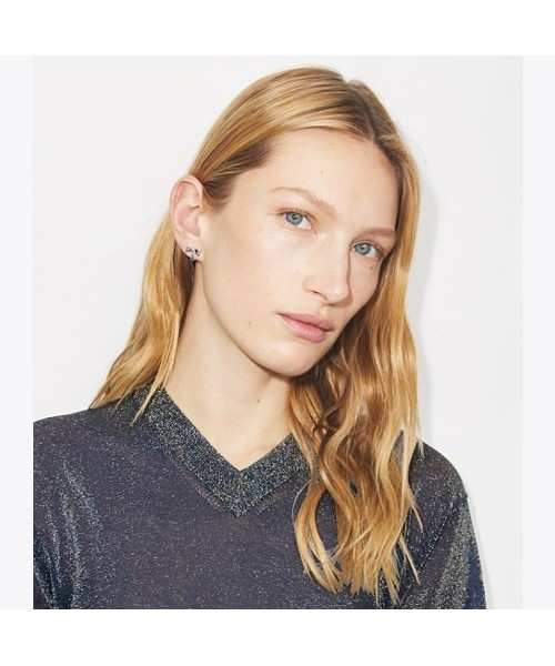 앙증맞은 리본 아래에 토리버치의 로고가 미니 사이즈로 더해진 러블리한 이어링입니다. 로고가 미니멀하게 사용되어 부담스럽지 않게 착용할 수 있으며, 러블리한 무드를 더해줄 아이템입니다.