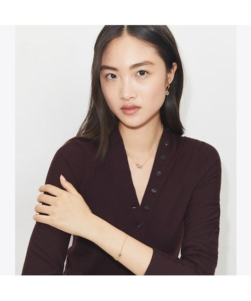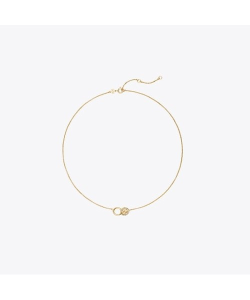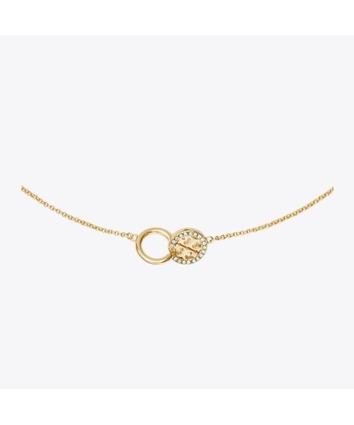 서로 맞물려 있는 더블 링 펜던트가 특징인 밀러 파베 인터로킹 펜던트 네크리스입니다. 한쪽에는 파베 크리스탈로 장식된 토리버치 더블 T 로고가 더해졌으며, 다른 한쪽은 심플한 링 디자인으로 제작되어 더욱 특별한 무드를 자아냅니다.
