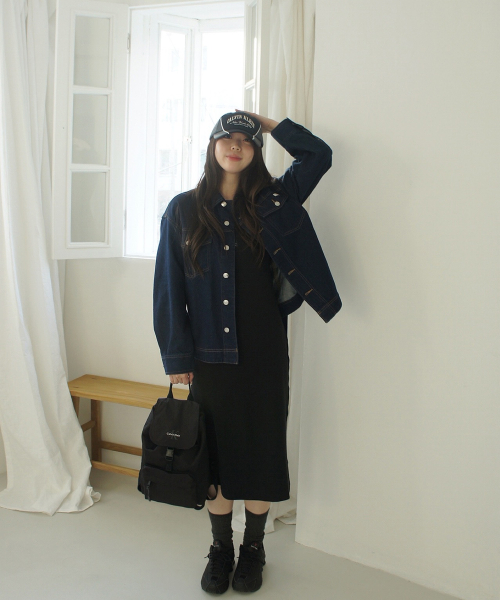 여성 베이비립 우븐 라벨 드레스 47F257G UB1