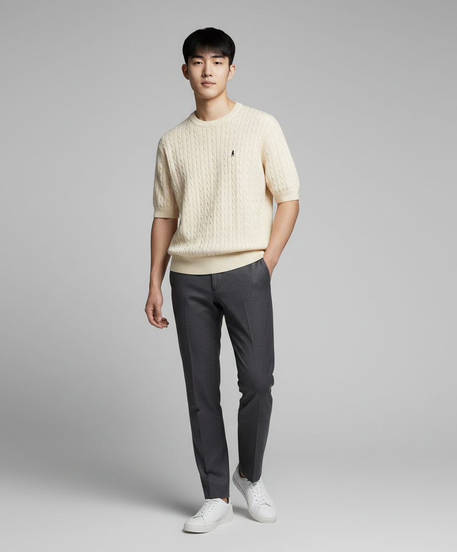 HERITAGE DAN CABLE KNIT TEE IVORY L