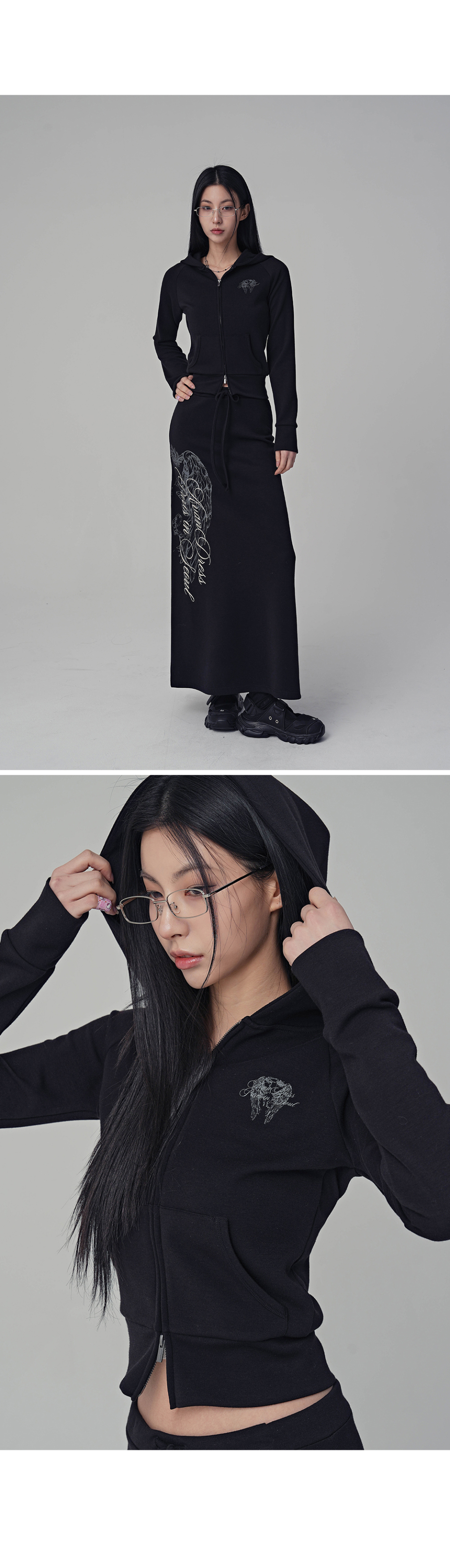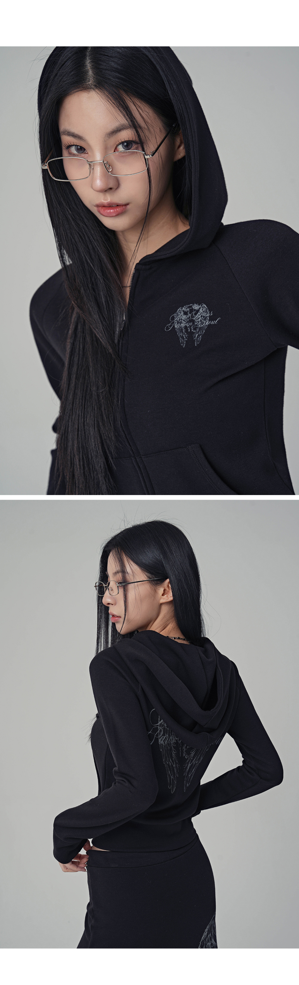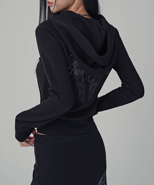 다크 윙 크롭 후디 집업_2Colors