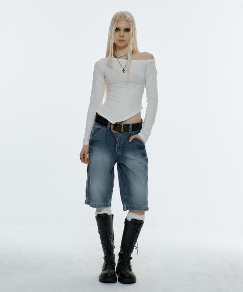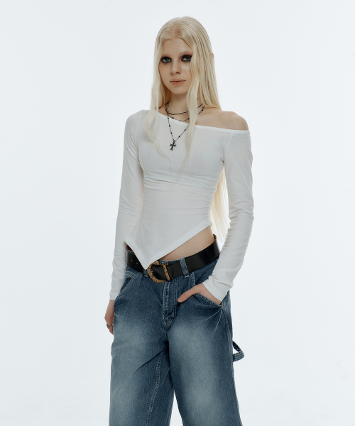 ONE OFF-SHOULDER SLIM T-SHIRT_2color