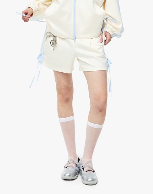 리본 트랙 쇼츠 크림