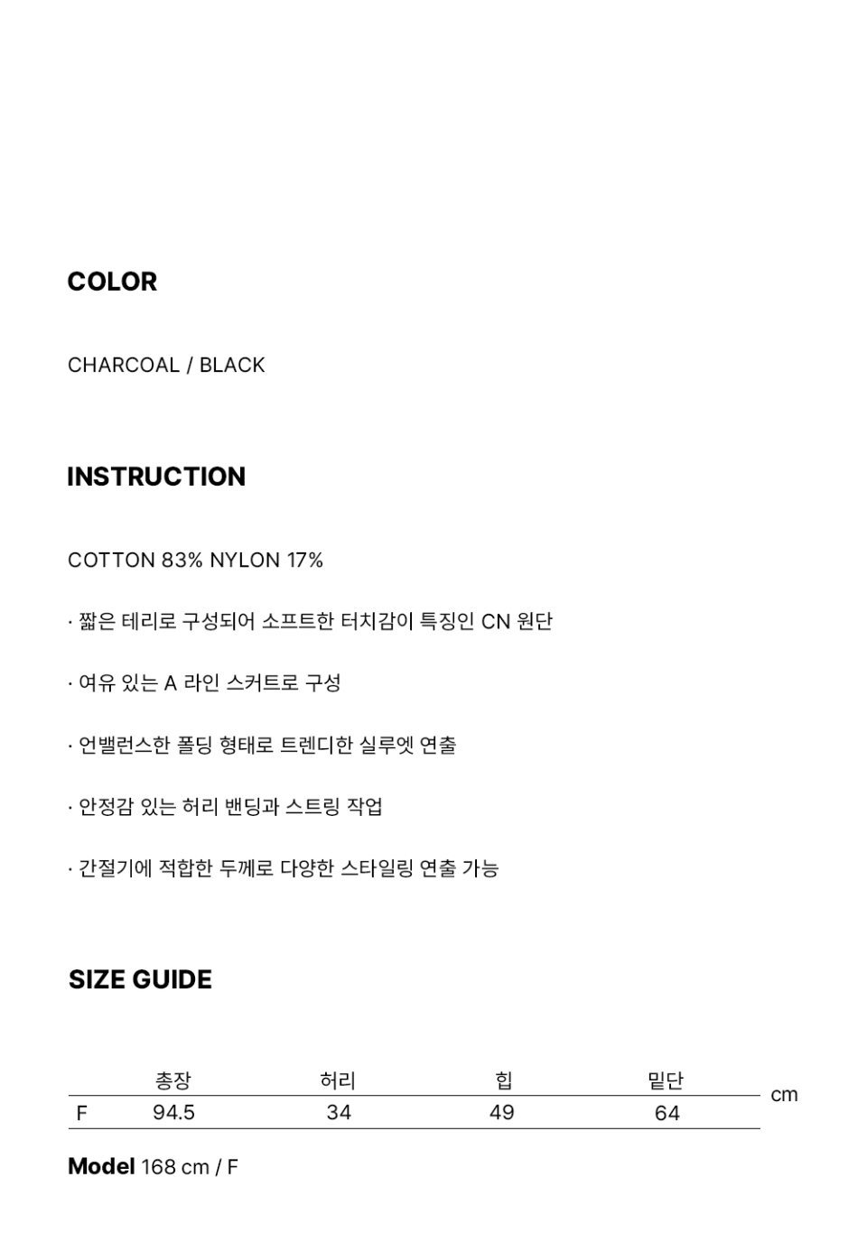 폴딩 테리 롱 스커트 [black]