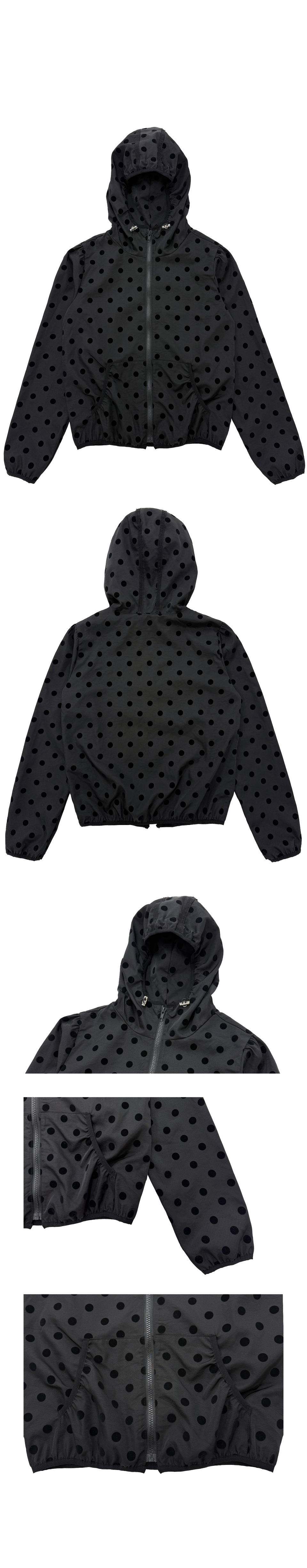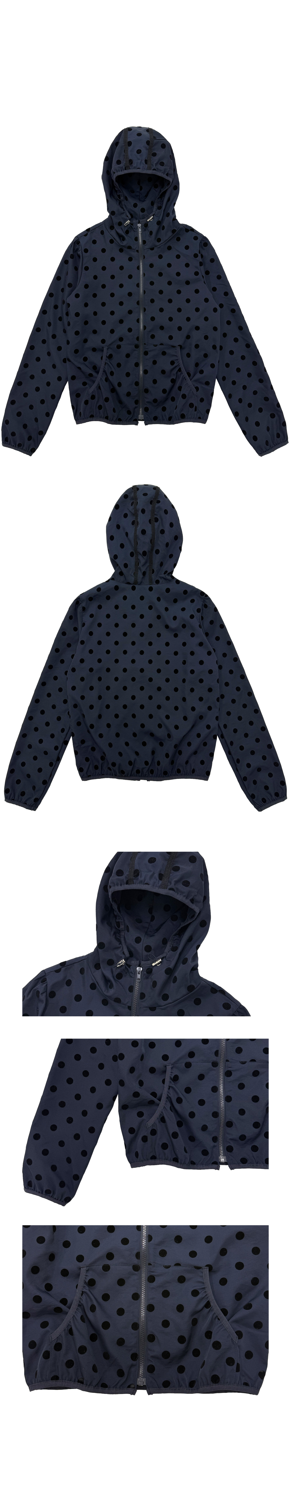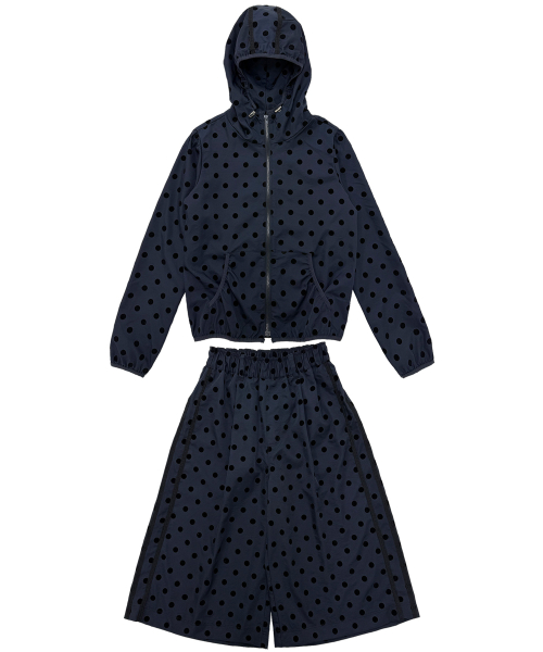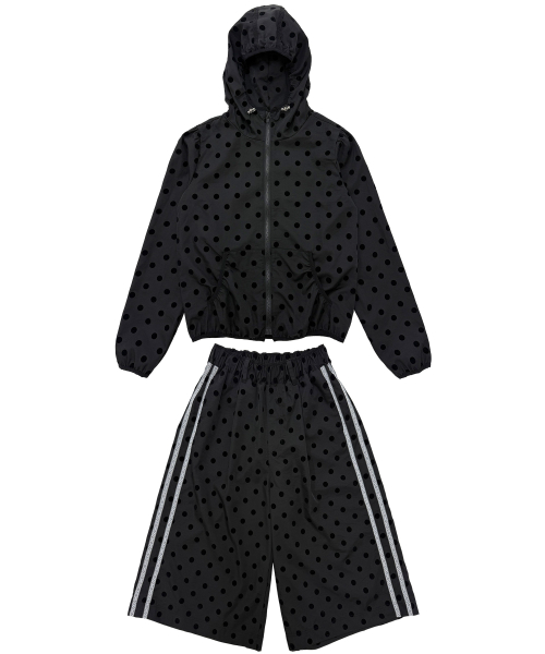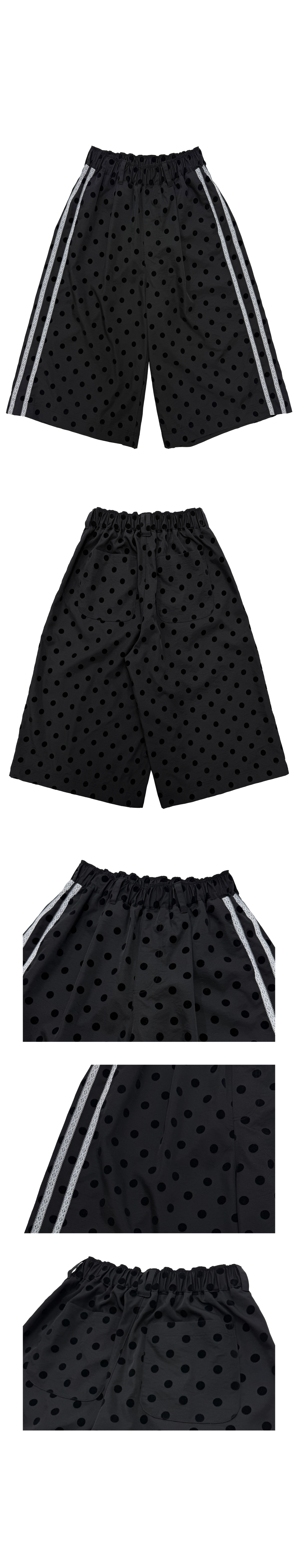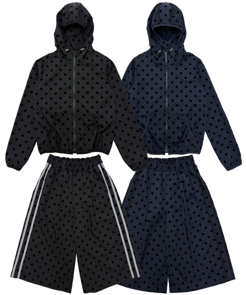 도트 점퍼와 8부팬츠. 점퍼 셔링과 바지 레이스를 가미한 셋업.
