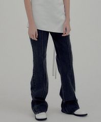 UNISEX Signature Pin Tuck Boots Cut Denim Pants [Washed Out Black]