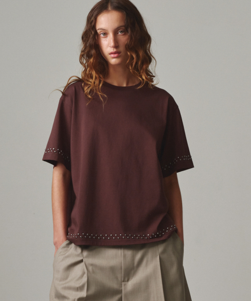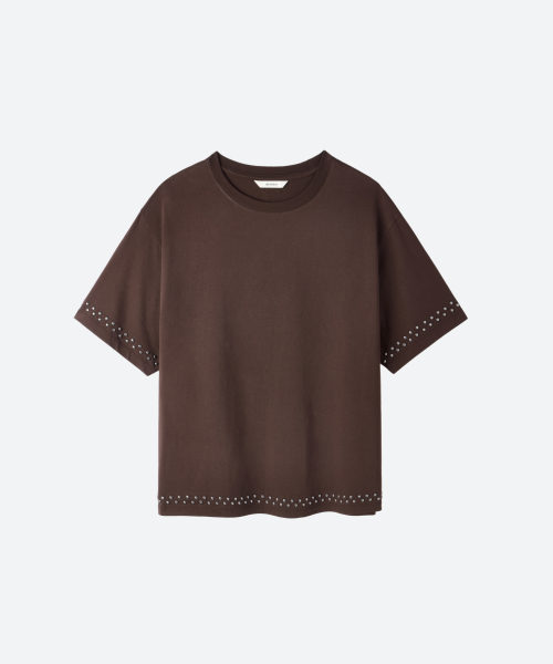 UNISEX, Stud Line Half T-Shirt / BROWN