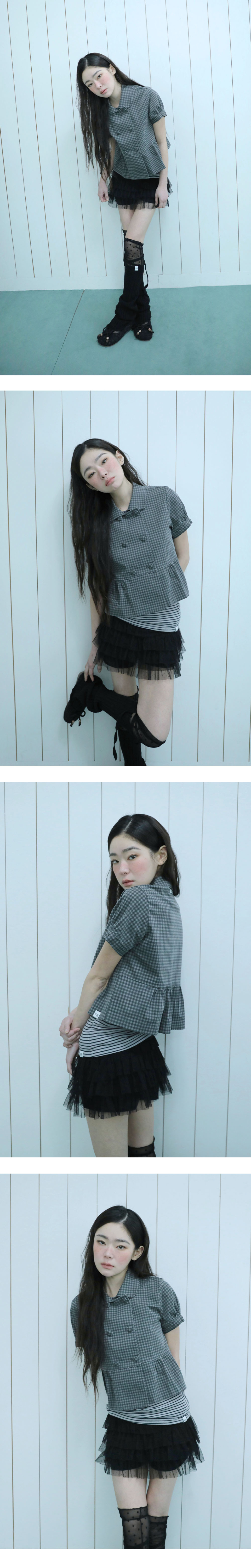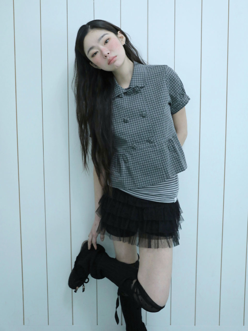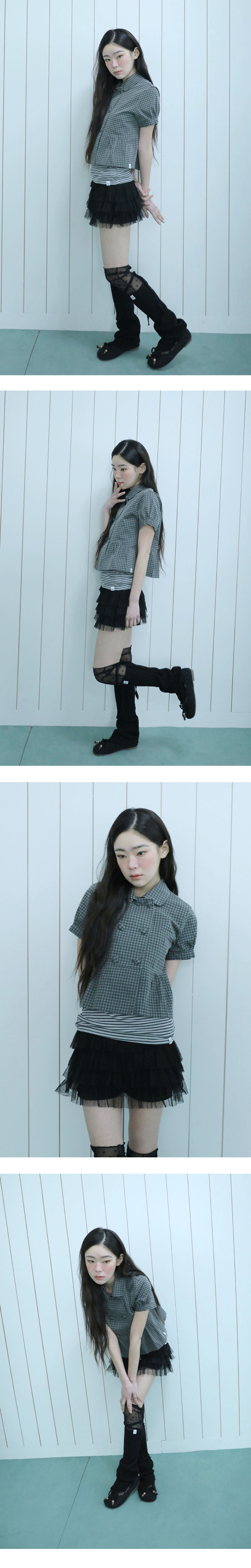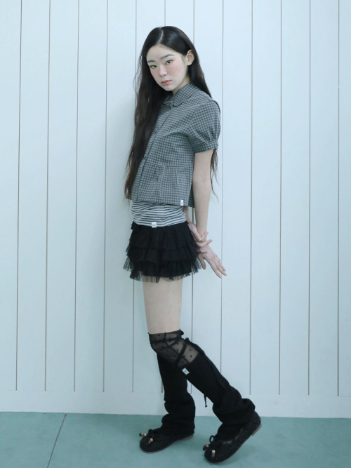 도트 패턴이 들어간 메쉬 원단으로 제작된 캉캉 스커트입니다.