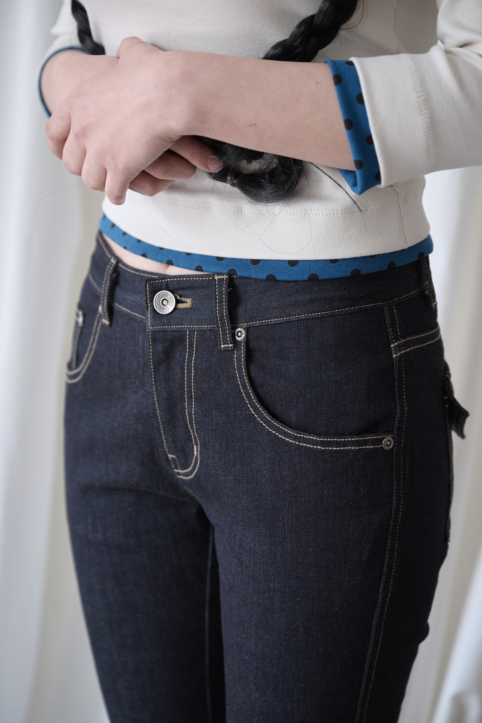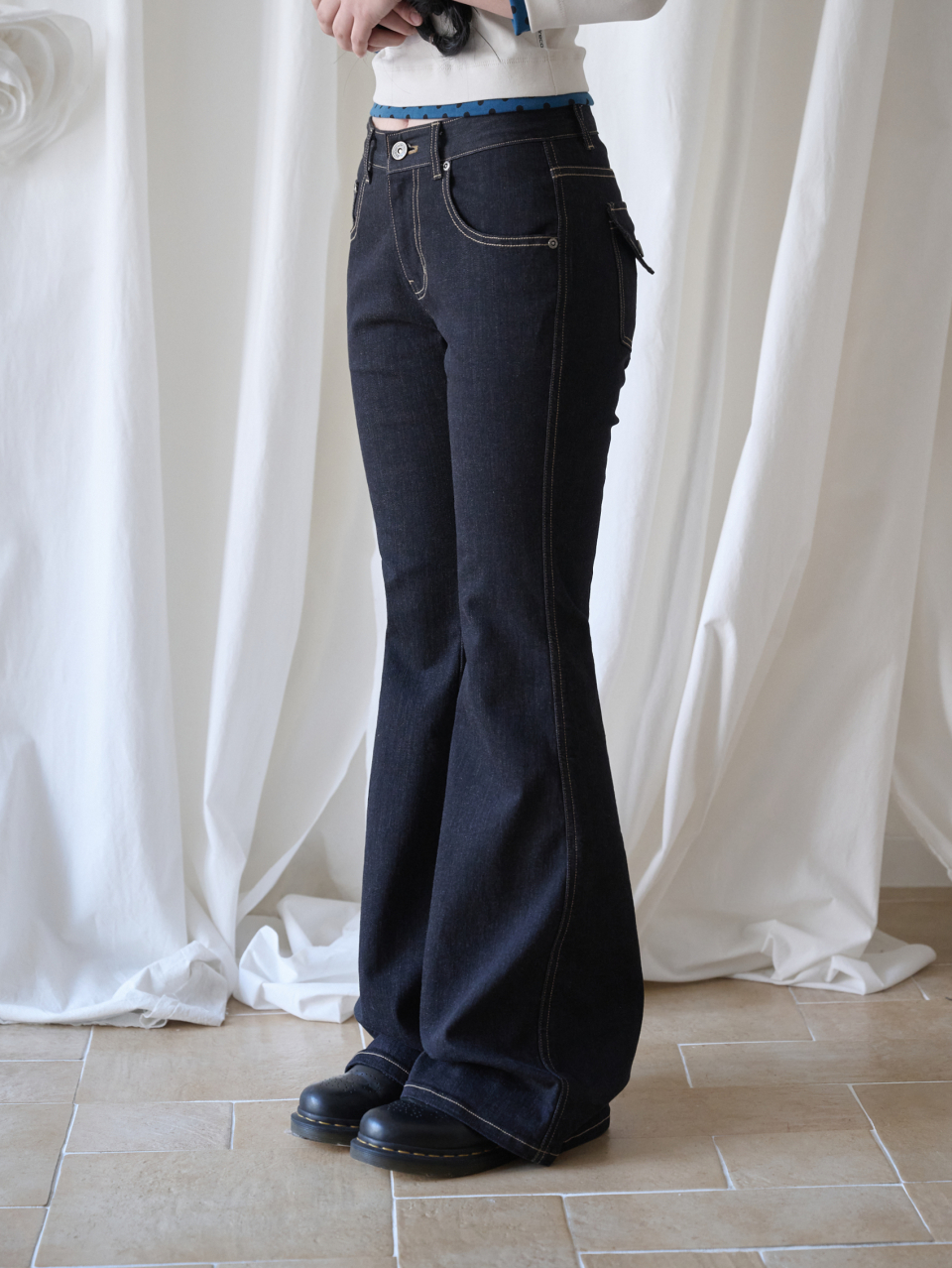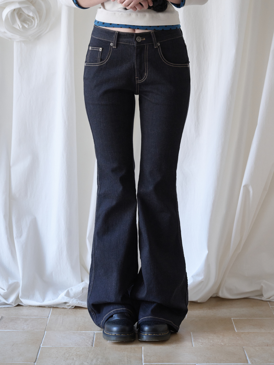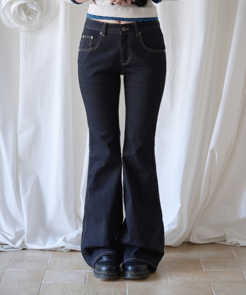 - 미드 라이즈의 부츠컷 실루엣