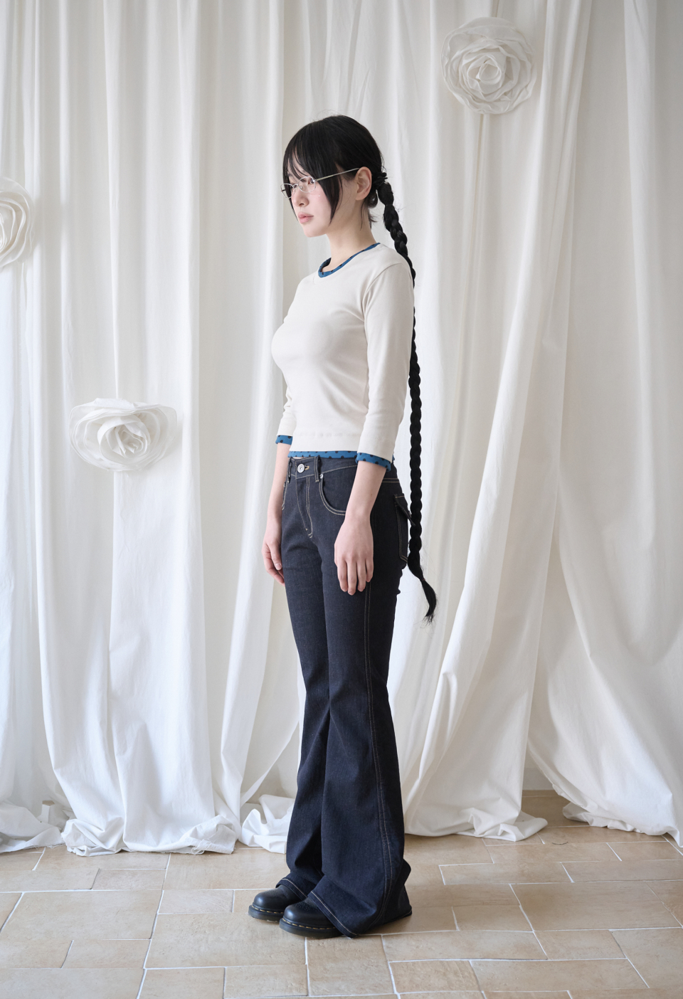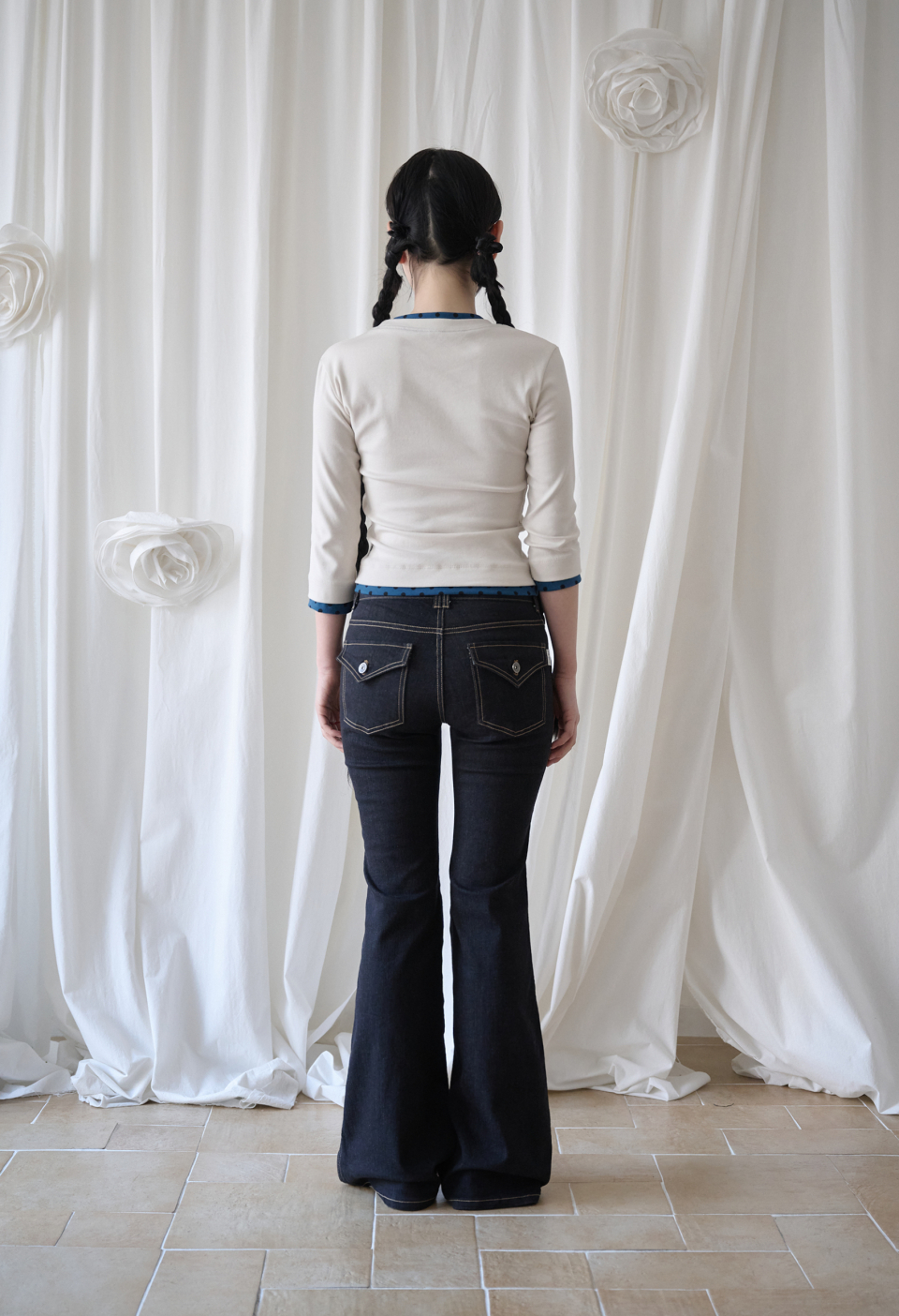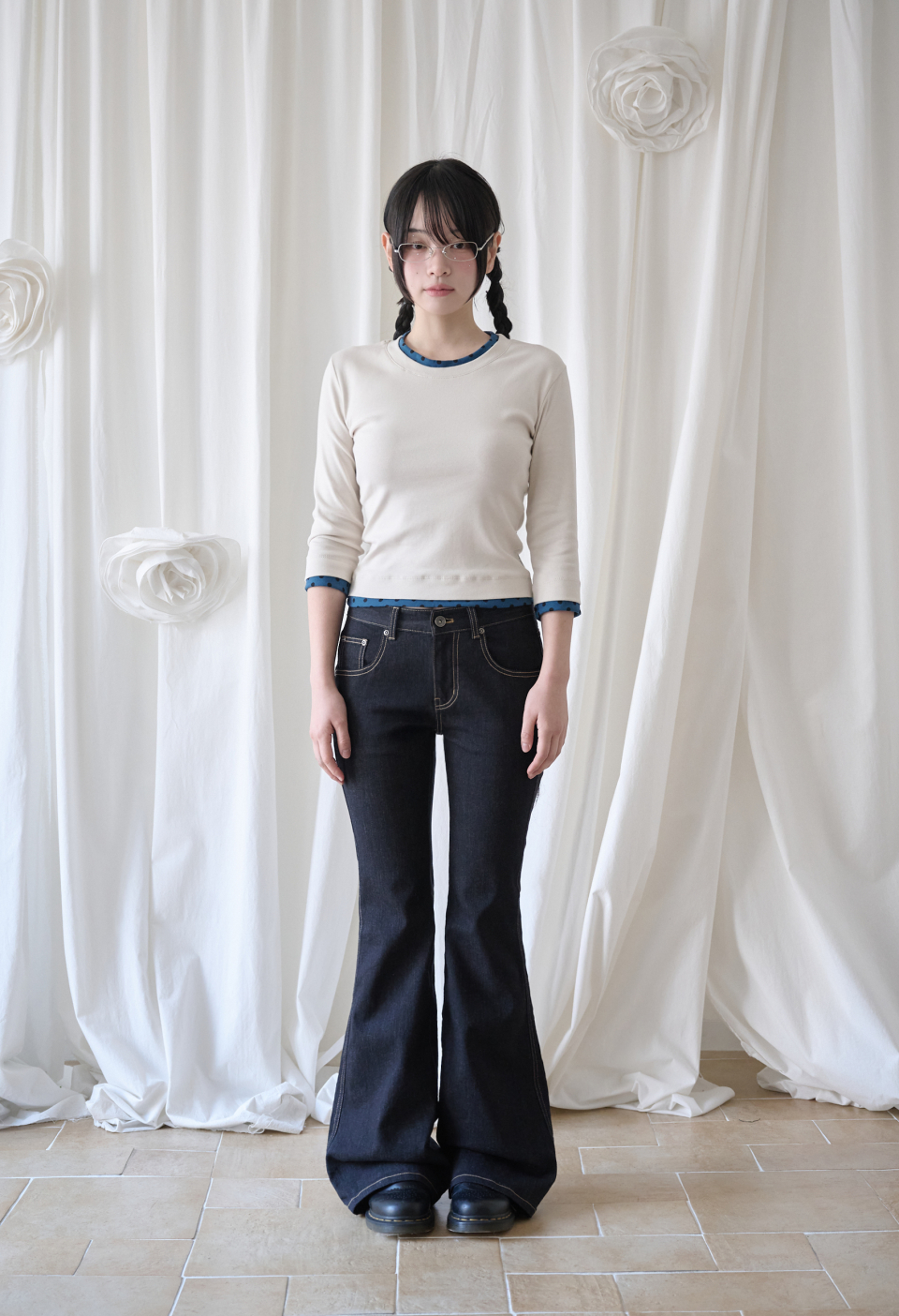 - 미드 라이즈의 부츠컷 실루엣