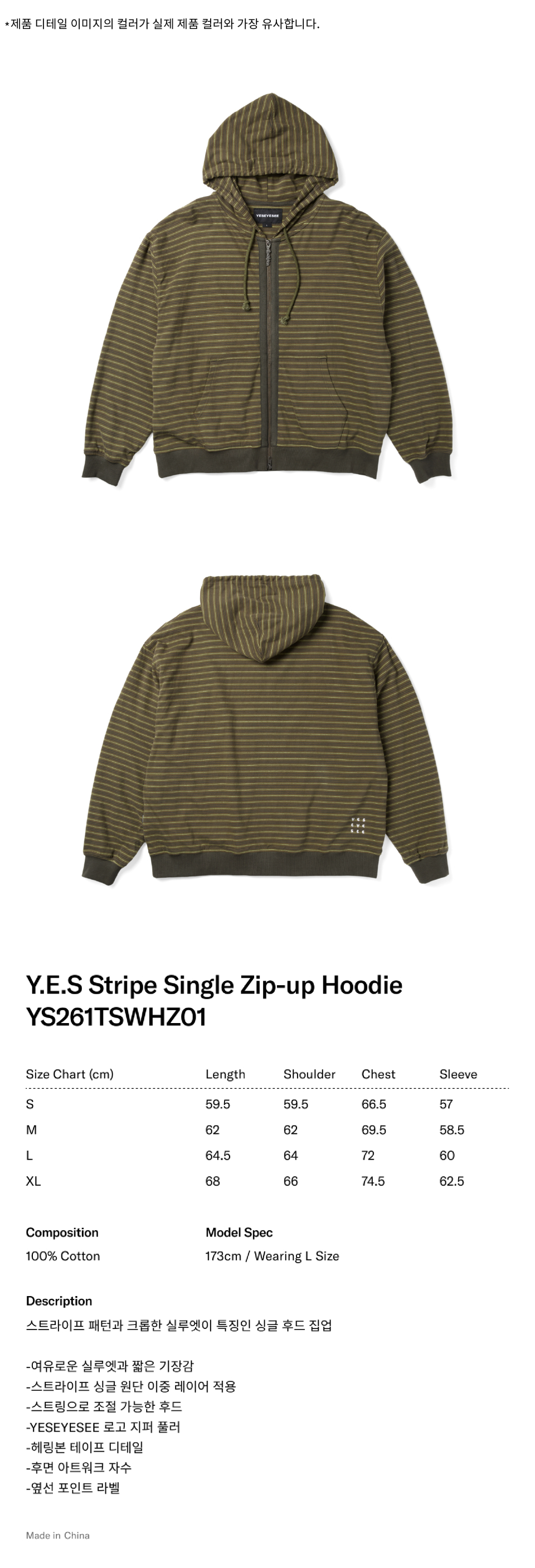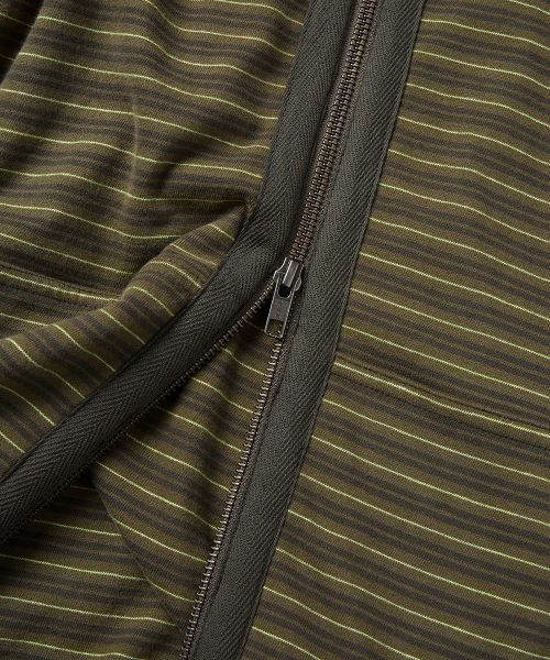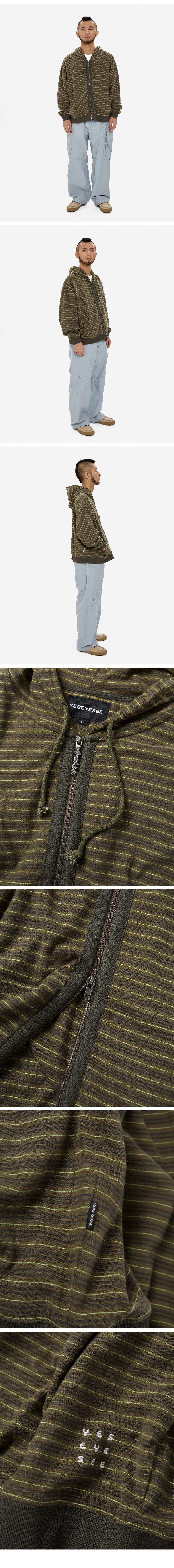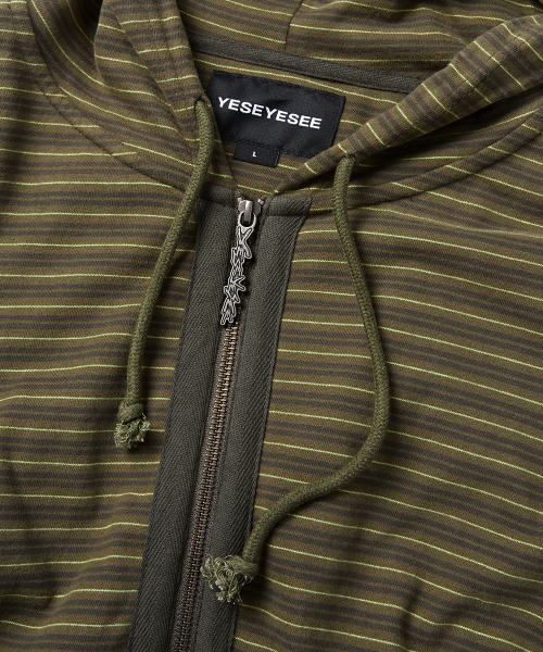 Y.E.S Stripe Single Zip-up Hoodie Khaki