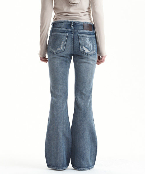 - 데미지 디테일과 허리 부분의 수술 구제 디자인이 포인트인 로우 웨이스트 팬츠