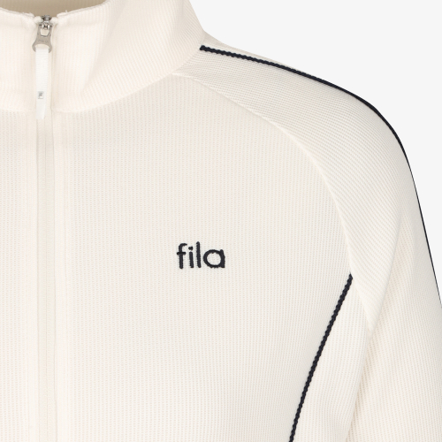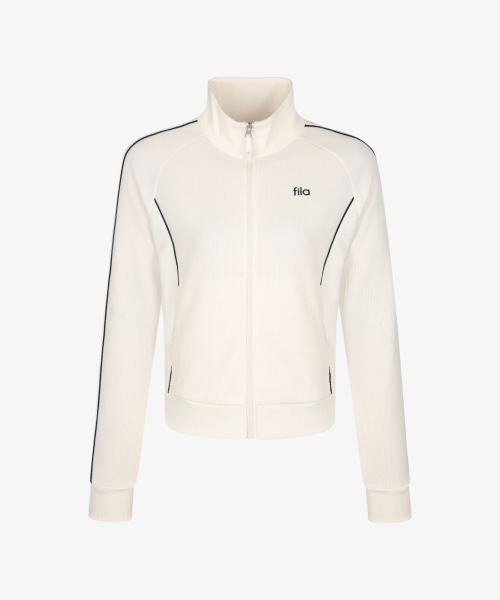 와플소재로 제작된 스텐넥 집업의 여성스러운 실루엣으로 체형을 자연스럽게 보완해주며, 양쪽 포켓이 있어 간단한 소지품 수납에도 편리합니다.