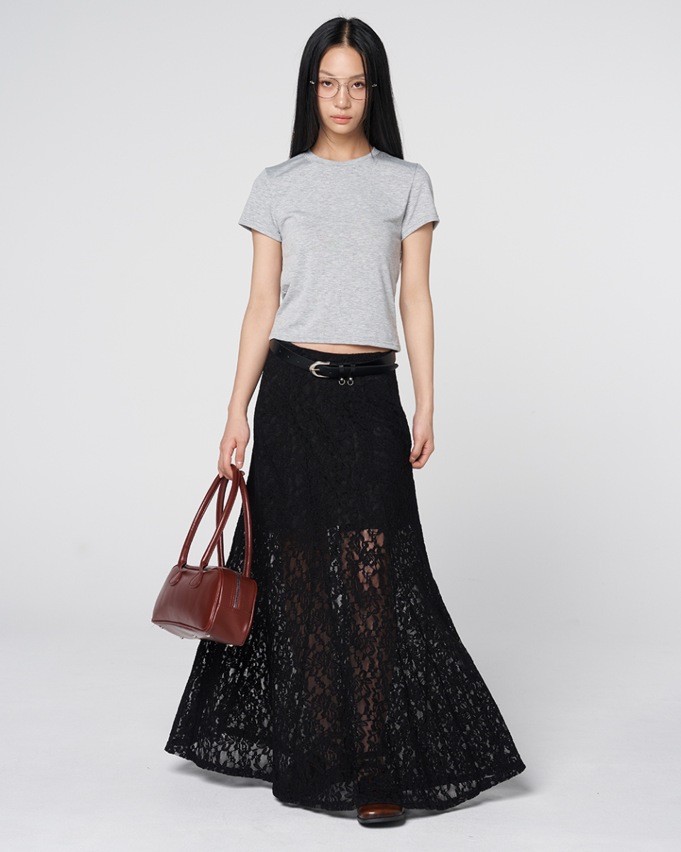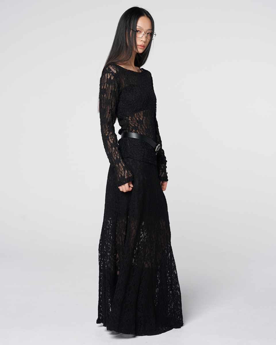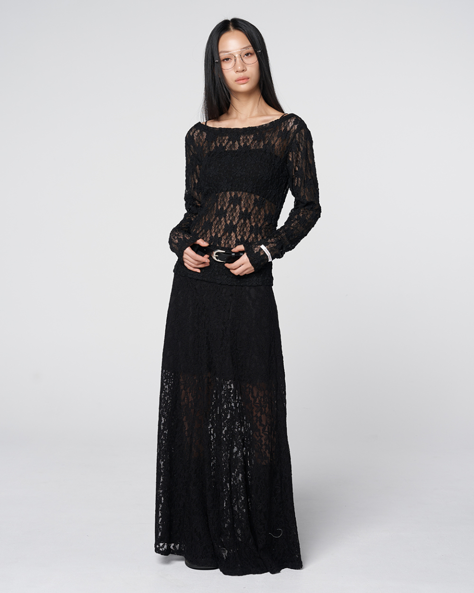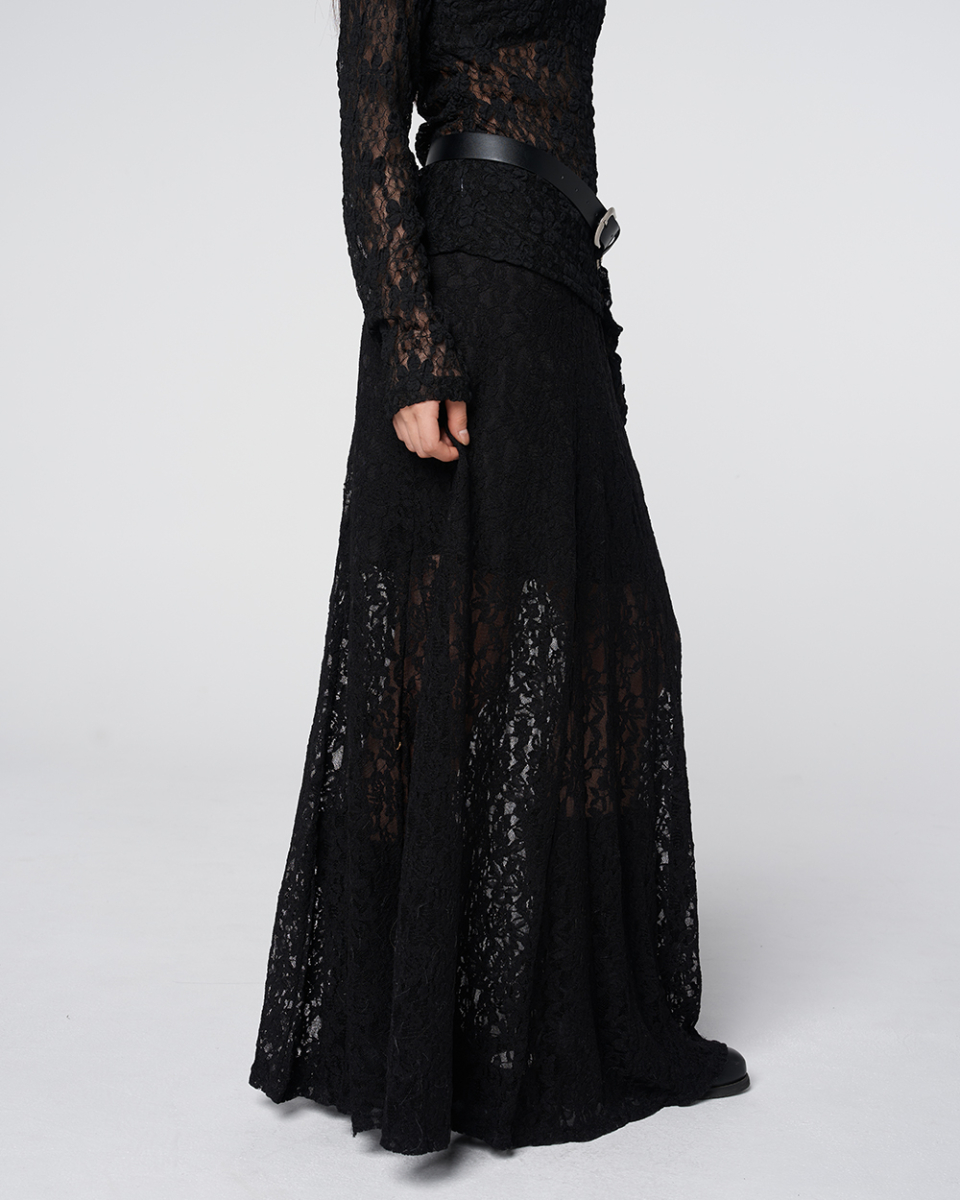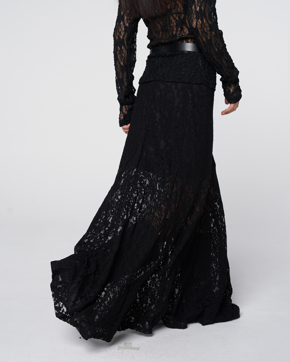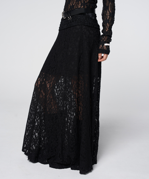 Sheer Lace Long Skirt Black