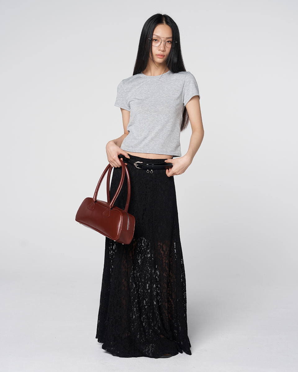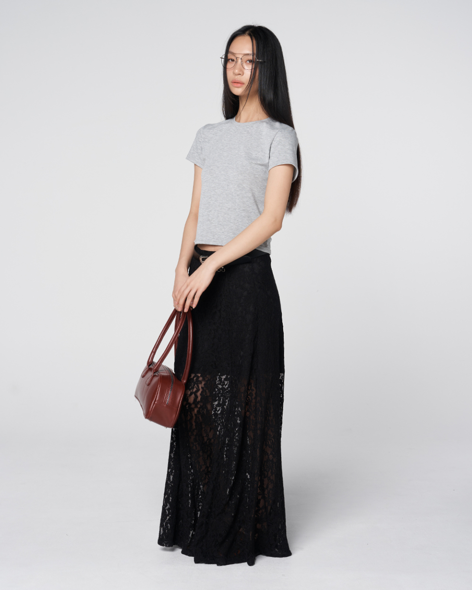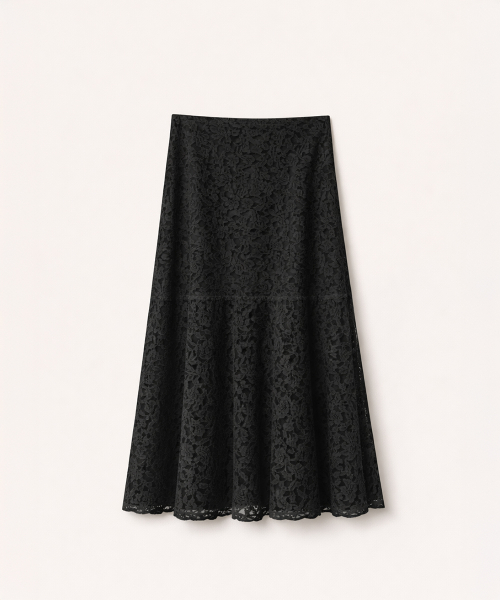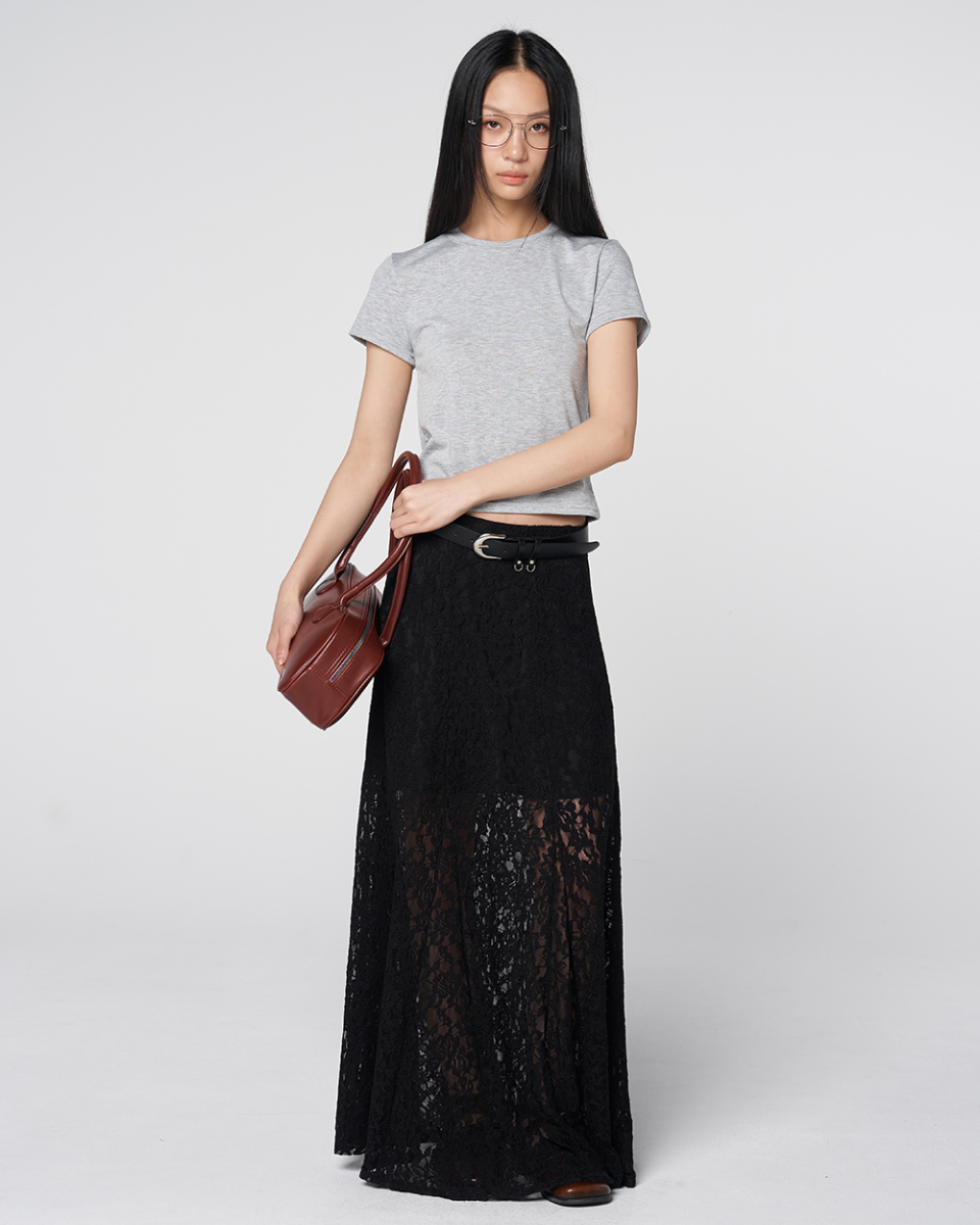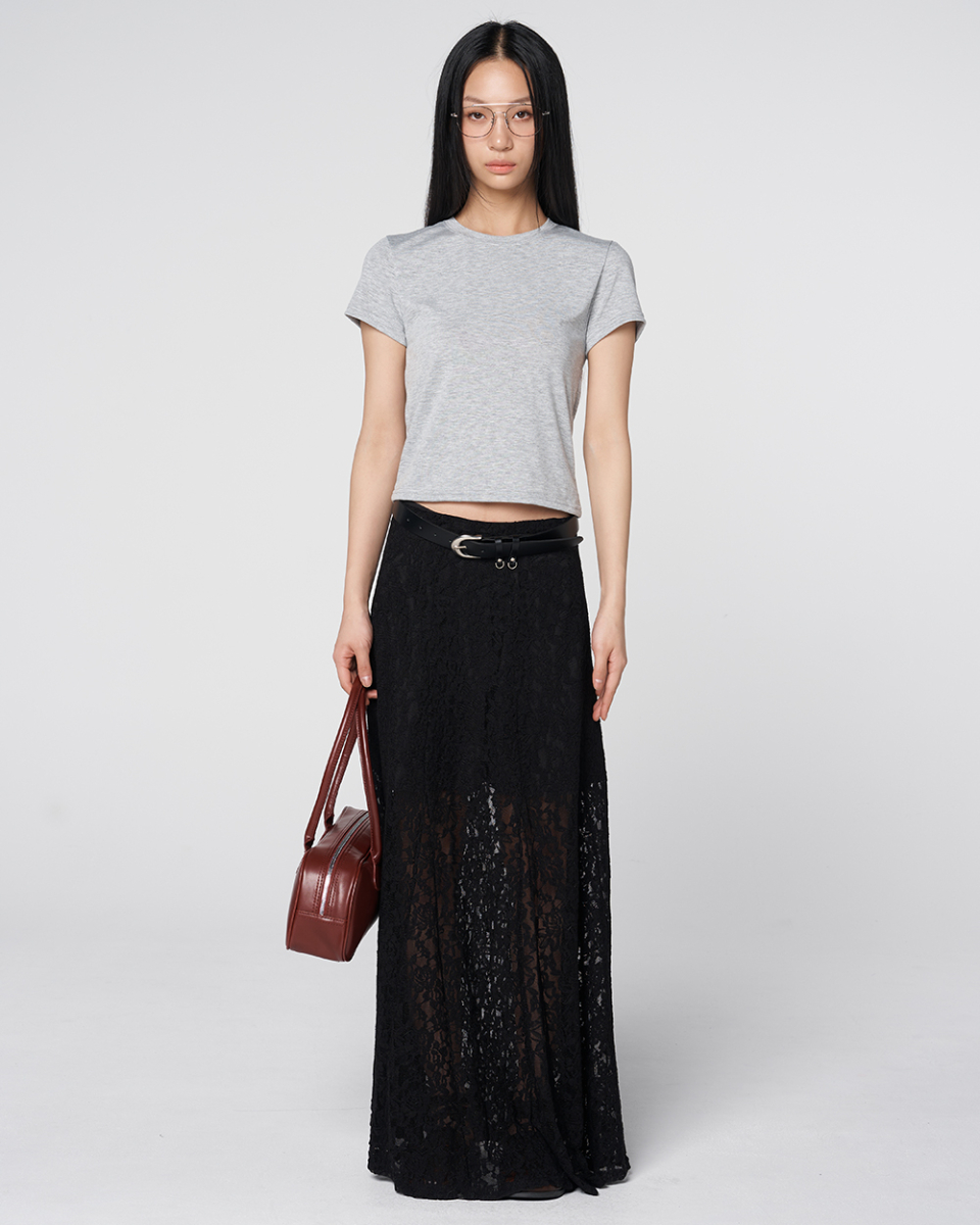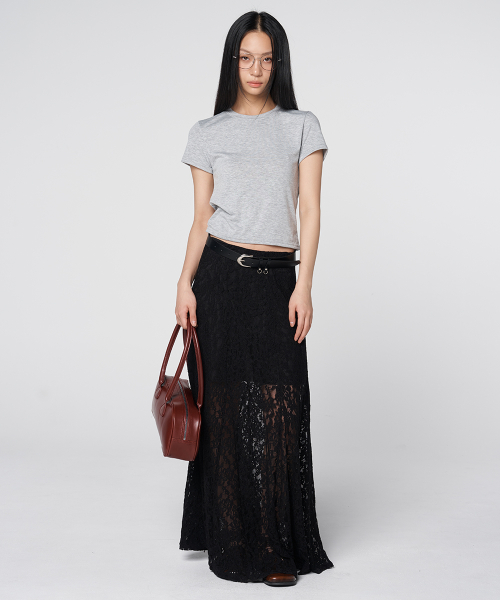 Sheer Lace Long Skirt Black