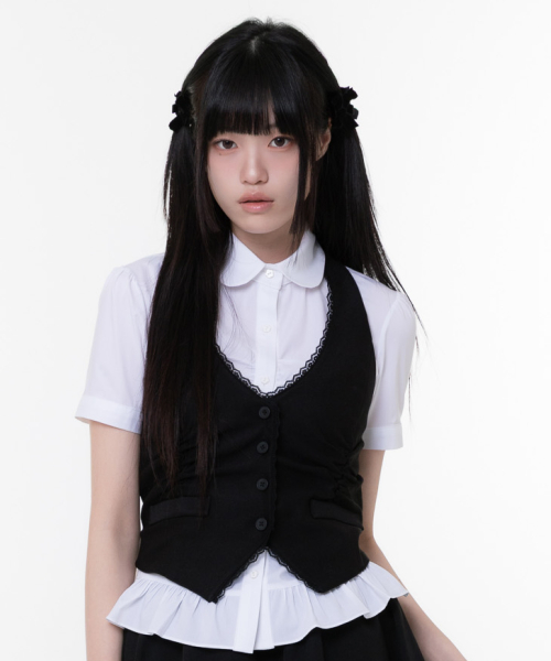 프릴 라운드 카라 반팔 셔츠