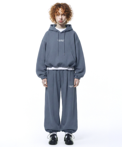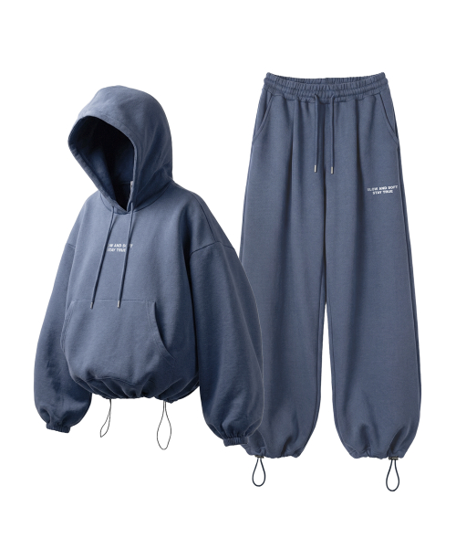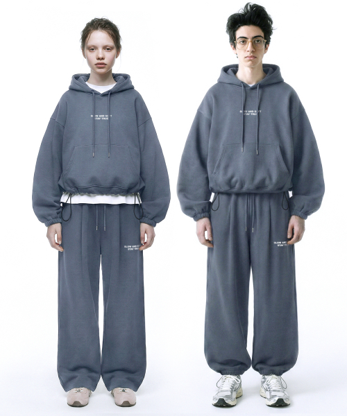 [set] SMALL SLOW AND SOFT String Oversized Hoodie + One Tuck Wide pants